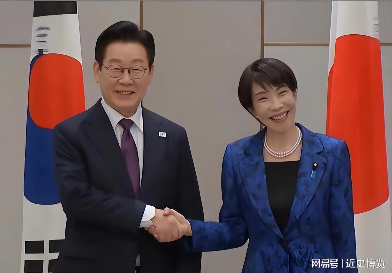李在明和高市早苗握手